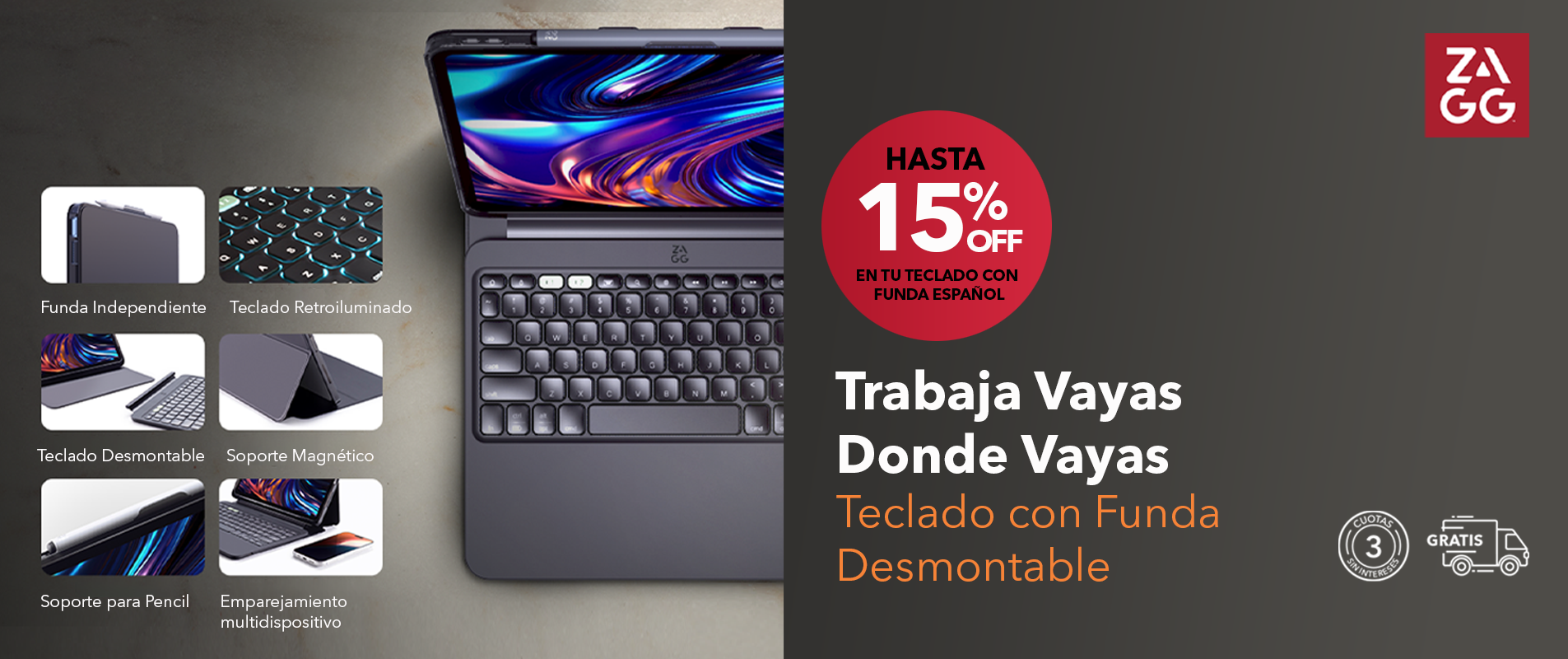Combo Funda con teclado Pro Keys 2 para iPad Air 13" M2 Zagg ES + Lápiz Pro Stylus 2