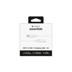 El cable mophie essentials USB-C a USB-C de 2 metros, diseñado con materiales de alta calidad para asegurar el máximo rendimiento y velocidad de conectividad.