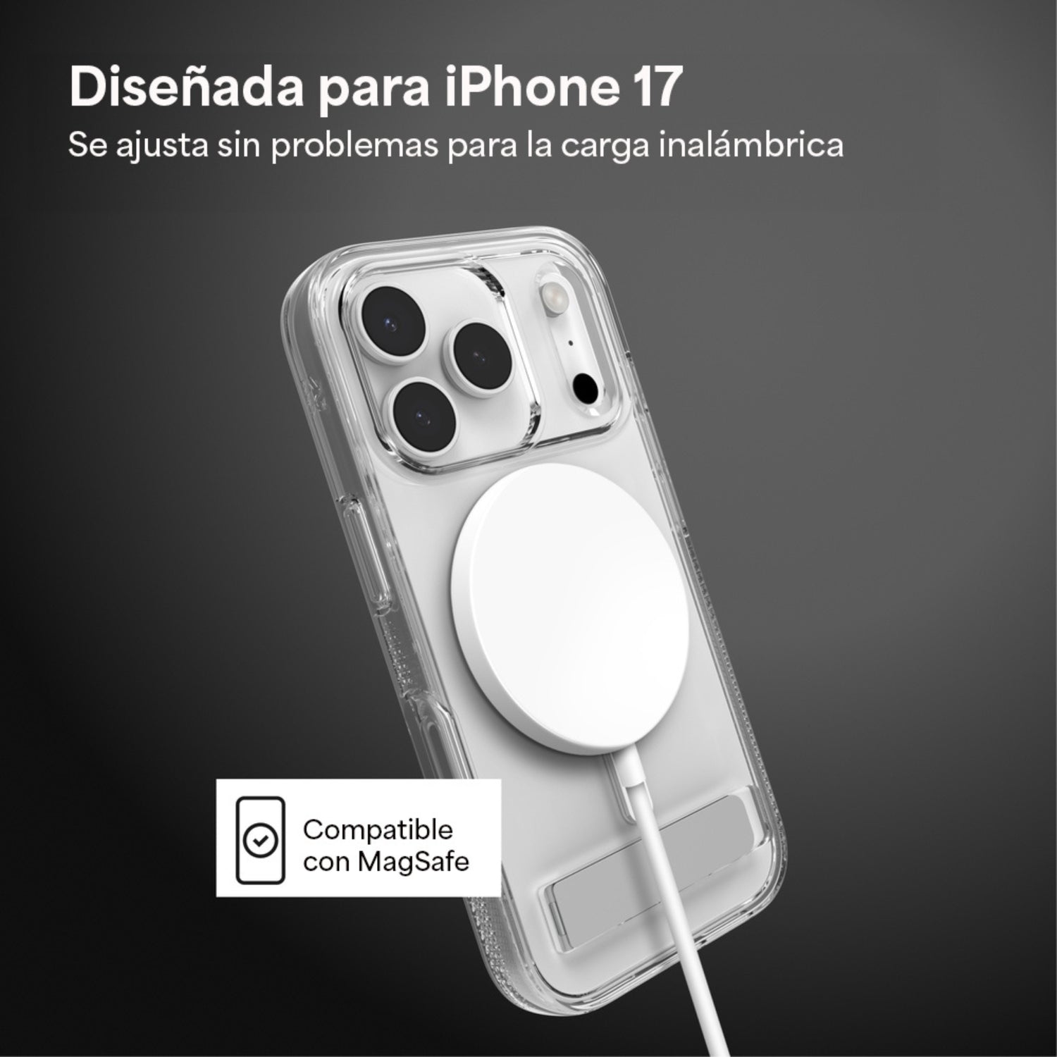 *Soporte integrado para mayor comodidad: El soporte incorporado sostiene tu iPhone de forma segura tanto en modo vertical como horizontal, ideal para entrenar, cocinar, hacer videollamadas y más, sin usar las manos.