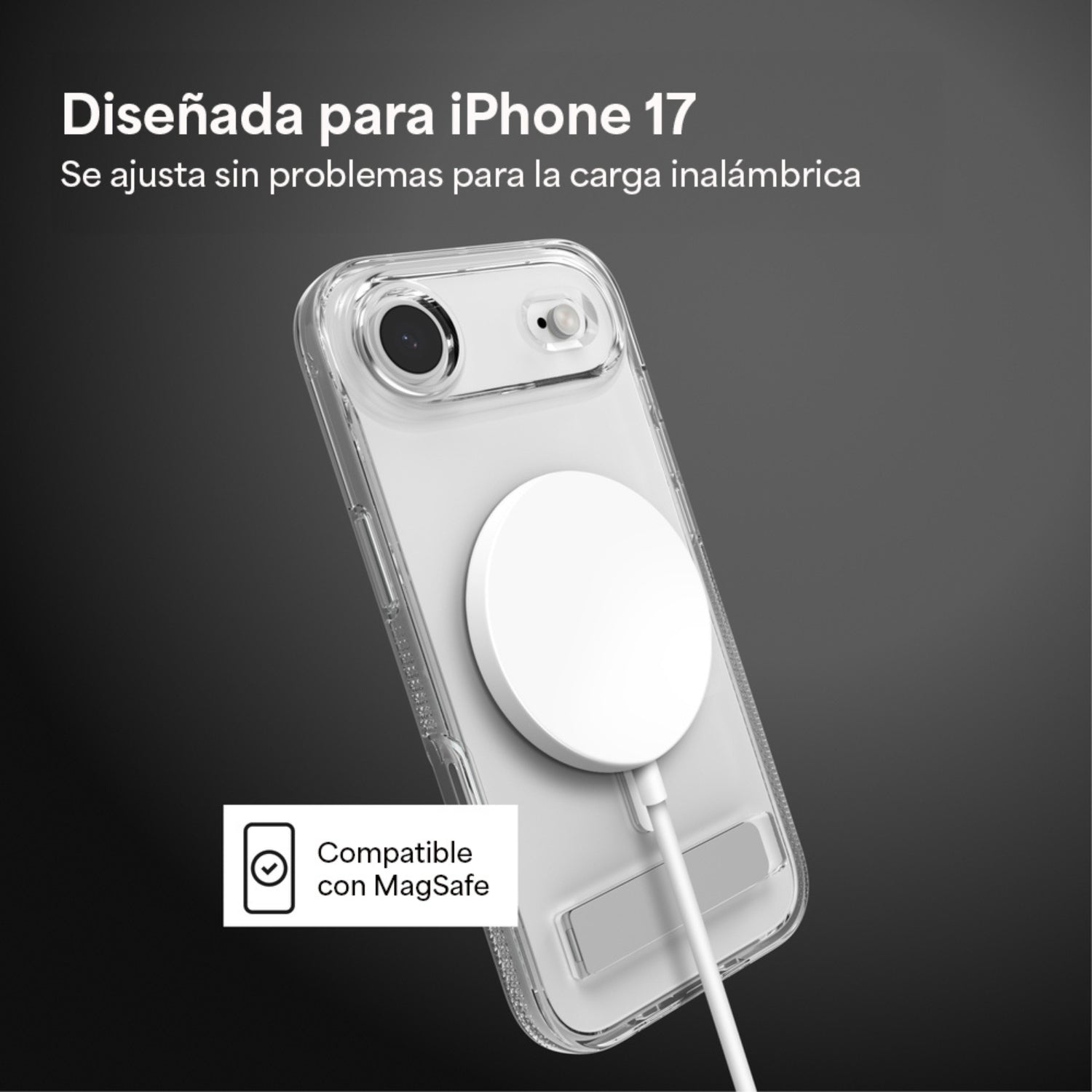 *Soporte integrado para mayor comodidad: El soporte incorporado sostiene tu iPhone de forma segura tanto en modo vertical como horizontal, ideal para entrenar, cocinar, hacer videollamadas y más, sin usar las manos.