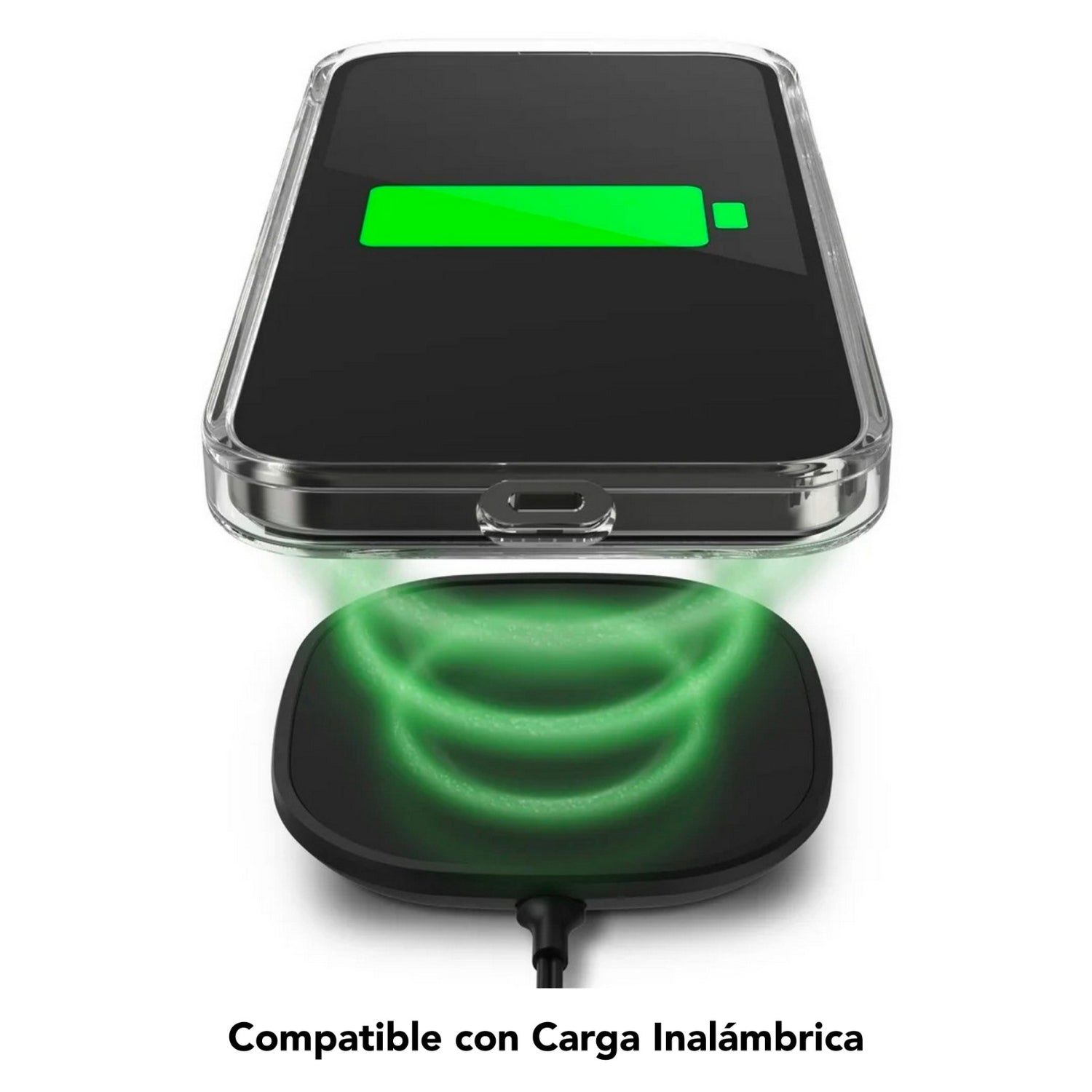 *Compatible con MagSafe: es compatible con el sistema de carga del MagSafe de Apple. Contiene magnetos en la carcasa, para que el cargador encaje en un “snap” en su lugar y quede alineado perfectamente para la carga inalámbrica rápida.