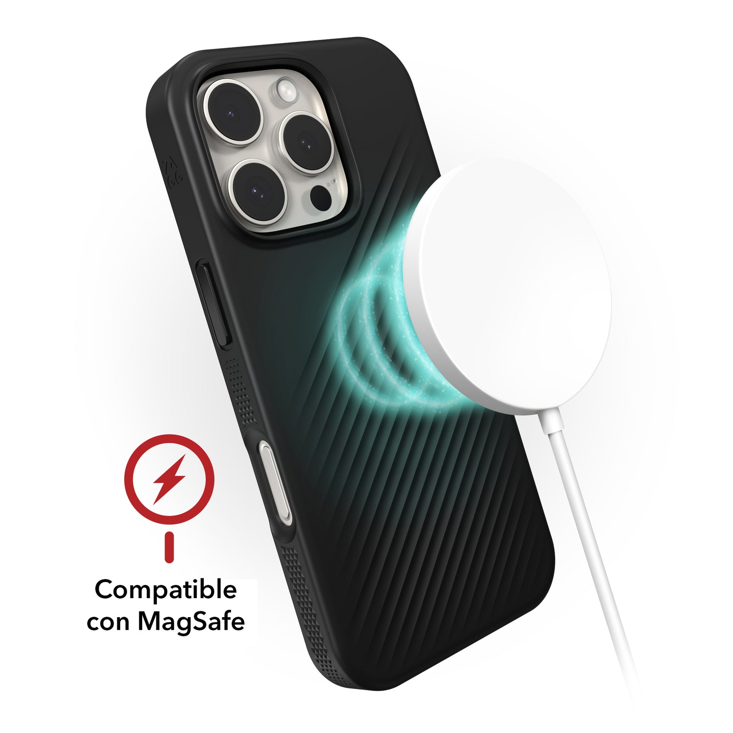 *Compatible con carga inalámbrica: La Luxe Snap es compatible con MagSafe y es compatible con la mayoría de los cargadores inalámbricos.
