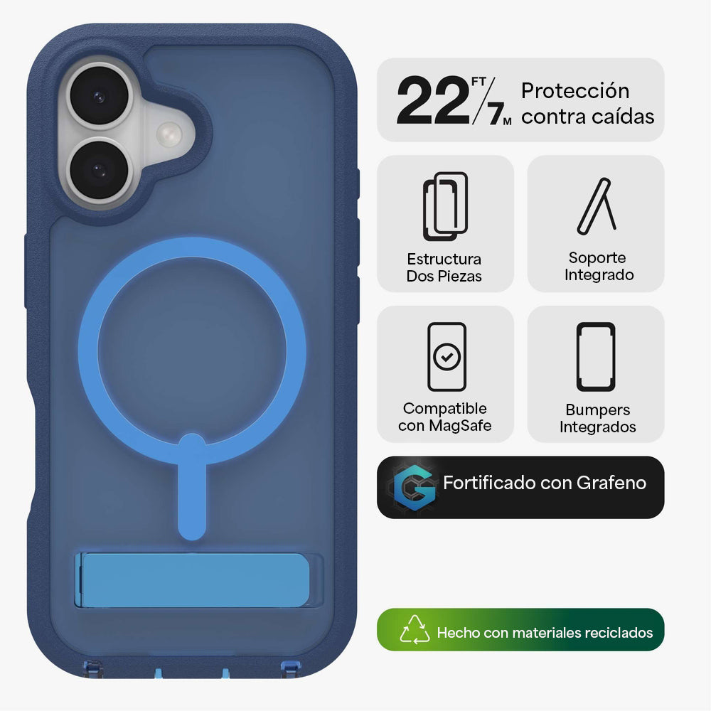 La carcasa todoterreno Rainier es la protección contra impactos más extrema de ZAGG. Reforzada con grafeno, esta carcasa de dos piezas se ensambla fácilmente y ofrece protección contra caídas de hasta 6,7 metros. Los bumpers reforzados en las esquinas brindan defensa adicional justo donde más la necesitas.