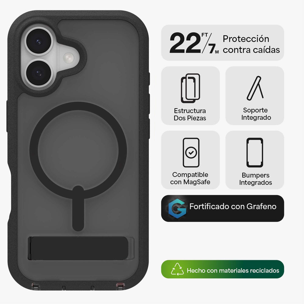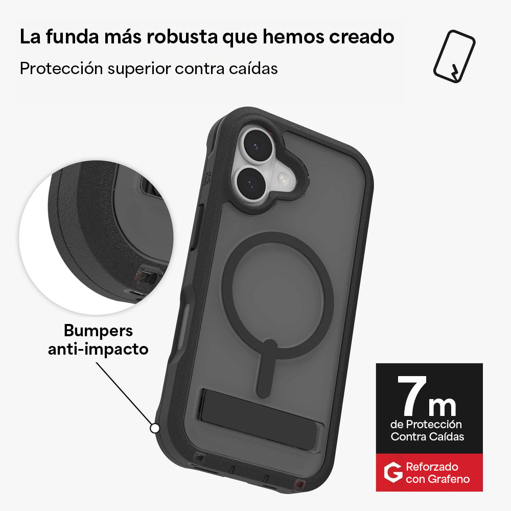 La carcasa todoterreno Rainier es la protección contra impactos más extrema de ZAGG. Reforzada con grafeno, esta carcasa de dos piezas se ensambla fácilmente y ofrece protección contra caídas de hasta 6,7 metros. Los bumpers reforzados en las esquinas brindan defensa adicional justo donde más la necesitas.