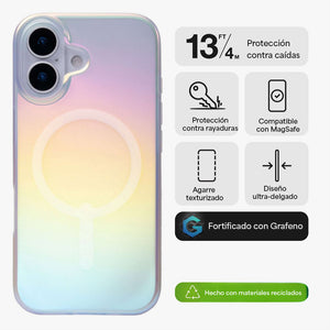 Inspirado en los intrincados tonos y formas de la naturaleza, el Milan Snap iridiscente combina con solidez el estilo urbano y la protección. Y es mucho más que una simple funda bonita. Milan Snap está diseñado para ser duradero y protege tu teléfono de caídas de hasta 4 metros de altura.