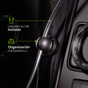 *Clip de Gestión de Cables: Se incluyen dos clips adhesivos para ordenar los cables y evitar que molesten mientras conduce.