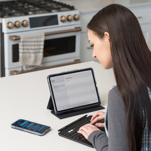 El teclado y la funda Pro Keys 2 con teclado en Español transforman tu iPad en una eficiente estación de trabajo para que puedas ser productivo dondequiera que vayas. Sus teclas estilo laptop han sido moldeadas y diseñadas para escribir de forma rápida y fácil. Pro Keys 2 tiene un teclado desmontable, capacidades de emparejamiento múltiple, un soporte ajustable y una cubierta tipo folio, teclas retroiluminadas para usarla en condiciones de poca luz y más. Pro Keys 2 es tu solución de teclado/funda para trabajar desde cualquier lugar para tu iPad. *Protección Duradera: La funda de policarbonato duradera tiene un núcleo rígido, bordes y cubiertas de teclas de goma y parachoques en las esquinas para proporcionar 6,6 pies (2 m) de protección contra caídas.