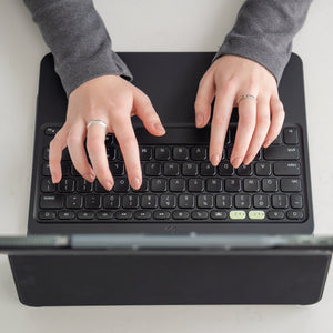 El teclado y la funda Pro Keys 2 transforman tu iPad en una eficiente estación de trabajo para que puedas ser productivo dondequiera que vayas. Sus teclas estilo laptop han sido moldeadas y diseñadas para escribir de forma rápida y fácil. Pro Keys 2 tiene un teclado desmontable, capacidades de emparejamiento múltiple, un soporte ajustable y una cubierta tipo folio, teclas retroiluminadas para usarla en condiciones de poca luz y más. Pro Keys 2 es tu solución de teclado/funda para trabajar desde cualquier lugar para tu iPad. * Protección Duradera: La funda de policarbonato duradera tiene un núcleo rígido, bordes y cubiertas de teclas de goma y parachoques en las esquinas para proporcionar 6,6 pies (2 m) de protección contra caídas.